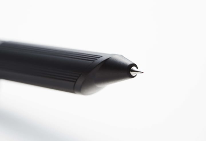また、新しいアシンメトリーな偏芯形状である「ポイントノーズ」形状をペン先に搭載することで、本体軸に対しリフィルがつねに真っすぐペン先に向かって出てくるようになったそうだ。