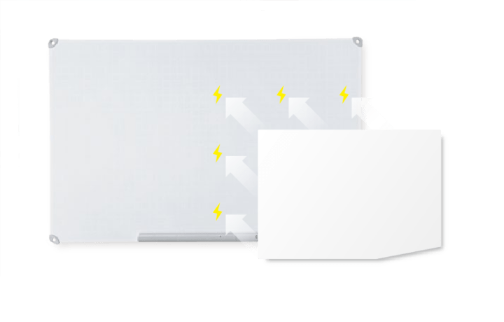 同商品は、画鋲やマグネットを使わない新しいタイプの掲示板で、貼りたい紙を添えるだけで、静電気の力でピタッと吸着してくれ、「貼る」「はがす」が自由自在にできるというものだ。大切な紙に穴を開けたりしないで済むのも特徴だ。