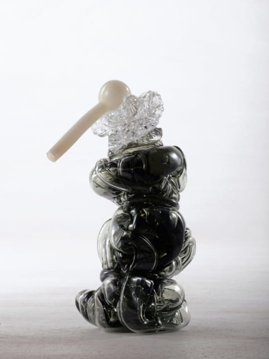 特に、溶けたガラスを扱うホットワークによる作品は、制作のなかで感じるガラスの粘性や動きを生かして作られる。柔らかなフォルムや滑らかな表面は、溶けたガラスの重みや遠心力といった、素材に加わる原理的な力をコントロールしながら、無駄のない動作によって形作られている。