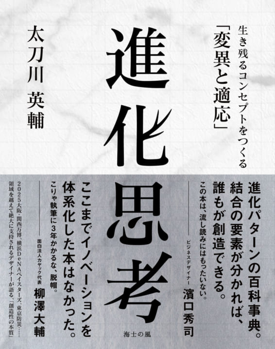 生物の進化から創造性を紐解くNOSIGNER・太刀川英輔の新刊書「進化思考――生き残るコンセプトをつくる『変異と適応』」が、島根県海士町の新しい出版社・海士の風より2021年4月21日(水)に発売される。