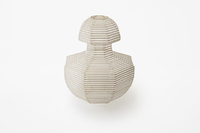 竹割から紙貼りまで一貫して手作業で行われるという伝統的な京提灯。その特長は強度の高さと丈夫さにあるという。そこで今回nendoでは、こうした特長とは真逆の要素である「弱さ」という因子を加え、新たな表現を試みた。
