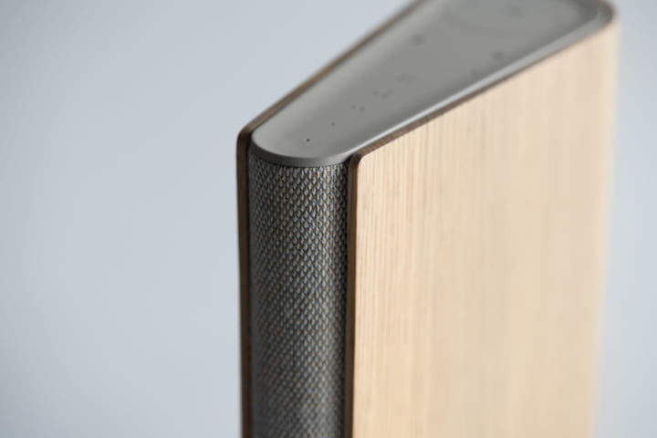 「Black Anthracite」と「Gold Tone」の2色展開で、「Gold Tone」はインテリアをヒントにサイドパネルにはオーク材を使用。背の部分にはKvadratのニットファブリックを採用した。「Black Anthracite」は、ポリマー製のサイドパネルに細い溝をつけて、スピーカーのスリムさを強調している。