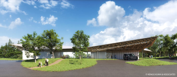 同施設は建築家・隈研吾の設計によるもので、温浴施設として、日本三百名山の1つである粟ヶ岳の眺望を楽しむことができる開放的な露天風呂や、焚火を囲むような感覚で楽しめるサウナを備えるという。
