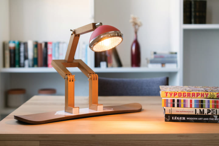 本体はトネリコの木でできており、関節が非常に柔軟で、光のあたる焦点をすばやく移すことができる。ハイパワーなLED電球と139個のガラスのくぼみによる光は、温かみのある雰囲気を作り出してくれるという。