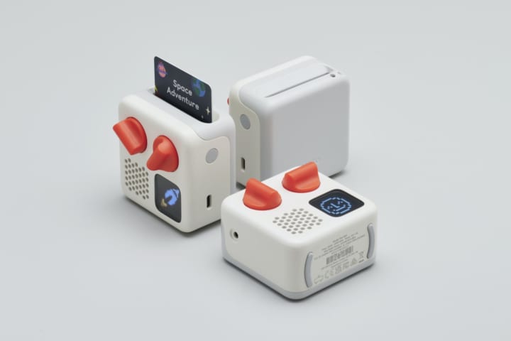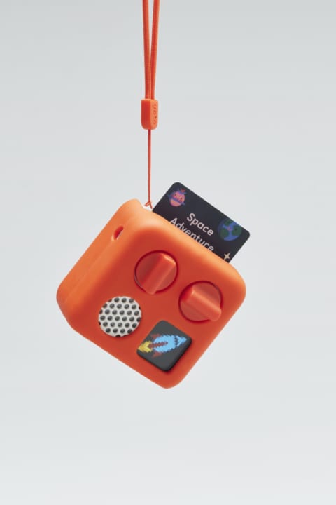 デザイン事務所 ペンタグラムがデザインしたこのデバイスは、既存の「Yoto Player」を小型化したもの。子どもたちがたくさんのお話や歌、ラジオやポッドキャストを安全に探すことができる。タッチパネルのようなものはなく、手で操作しながらワクワクするようなサウンド体験ができるという。