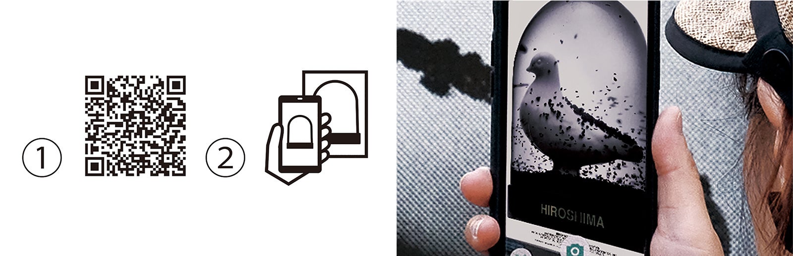 大貫のポスターは、AR(拡張現実)を使用したもので、スノードームには平和の象徴である白い鳩が入っている。通常ならスノードームには白い粉が封入されているが、この作品には黒い粉が封入されており、AR専用アプリ「aug!」を開いて携帯をかざすと、時間を巻き戻すようにポスターが動き出す。