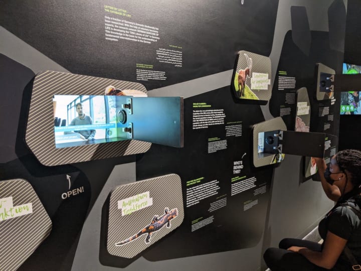 展示は、わかりやすいものから深度のあるものまでさまざま。再生建材を利用し、さらに再生可能なものとして設計された住居ユニット、エコシステムの複雑さを実際に目にしながら理解できるようつくられた観察ユニットなど、細かく目を通していくと興味深い研究や開発を知ることができる。また、随所で科学博物館のようなインタラクティブ展示を盛り込んでいたのも好感が持てた。