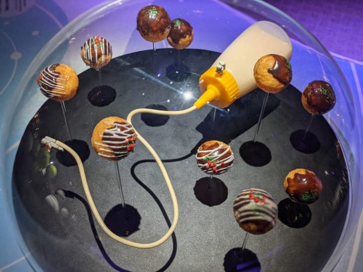 しかし、透明性のあるこの外観とは異なって、内部の展示はほとんどが閉じられた空間の中で繰り広げられる。日本の伝統を空間の中に投影し、細かな霧とともに幻想的にイマーシブに体験できる空間から始まり、日本の現代テクノロジーをお椀など日用品を用いた見立ての手法によって、多数の精巧なミニチュア模型として展示する空間、そして地球を囲む全周型空間で、個々の来館者の関心から収集したデータをもとにカスタマイズされた自分と多様性への希望を見せてくれる展示などを通過する。