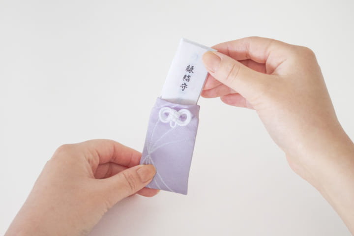 「えらべるおまもり」は、願い事の種類と好みに合わせて、内符と外袋をそれぞれ選ぶことができる御守。外袋には、乃木神社らしい5種類のモティーフを抽象的な線画で施した。軽やかな色の糸を使うことで、気持ちに寄り添うことのできる柔らかな存在を目指したという。