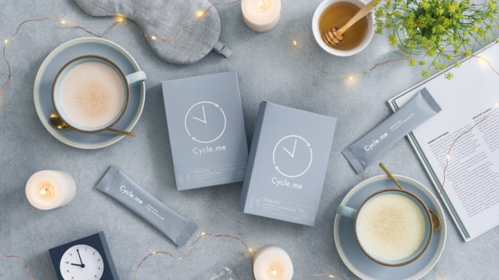 夜の商品としては「サイクルミー ムーンミルク」を用意。ムーンミルクはインド古来の知恵から生まれたドリンクで、6種のスパイスとハーブにGABAを配合したミックス粉末を牛乳などに溶かして飲む。こちらはジンジャー&ルイボスとシナモン&カモミールの2フレーバーがある。