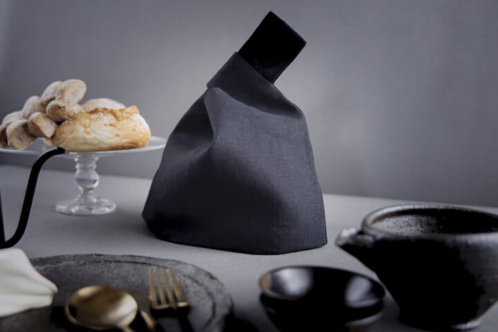 「イタリアでは、パンを購入したときには紙袋に、配達してもらう際は麻のバッグに入れられ、レストランでは布を敷いたカゴに入れて出されます。ところが、日本では購入するとビニール袋に入れられることが多く、焼き立てなのにしんなりしてしまって、美味しさが損なわれてしまうのが気になっていました」。そして、布で容れ物をつくれないかと考えていたときに、ヘンプ素材と出会って結び付いた。2017年には、持ち運びに便利なブレッドバッグ「デネブ」を発表し、2020年には、汚れが目立ちにくいブラックの新色を加えた。