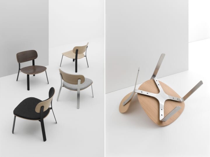▲「ZUNTO」(2022)。後ろ脚の前に背当てを付けることで、同じサイズの椅子でもより大きな背当ての面積を確保でき、心地よさに違いをもたらす。インテリアズから10月に発売された。