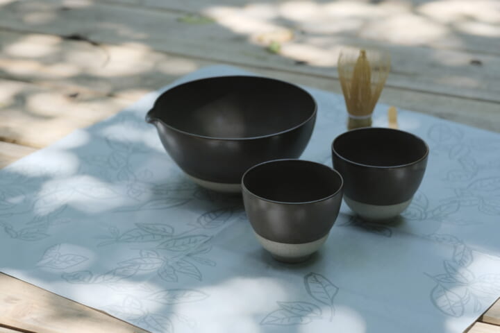 今回のコレクションでは、監修者に武家茶道の石州流伊佐派 家元・磯野宗明を迎え、明確な創造的ビジョンと茶道の専門知識を融合。日本茶の文化、伝統、精神をベースに、抹茶をともに楽しむための茶器を作り上げた。