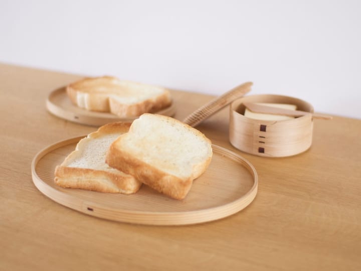 ▲柴田慶信商店の「マゲワ パン皿」(2007)。白木の秋田杉は、蒸気を適度に吸ってくれるので、さくっとした焼きたてのおいしさを味わうことができる。