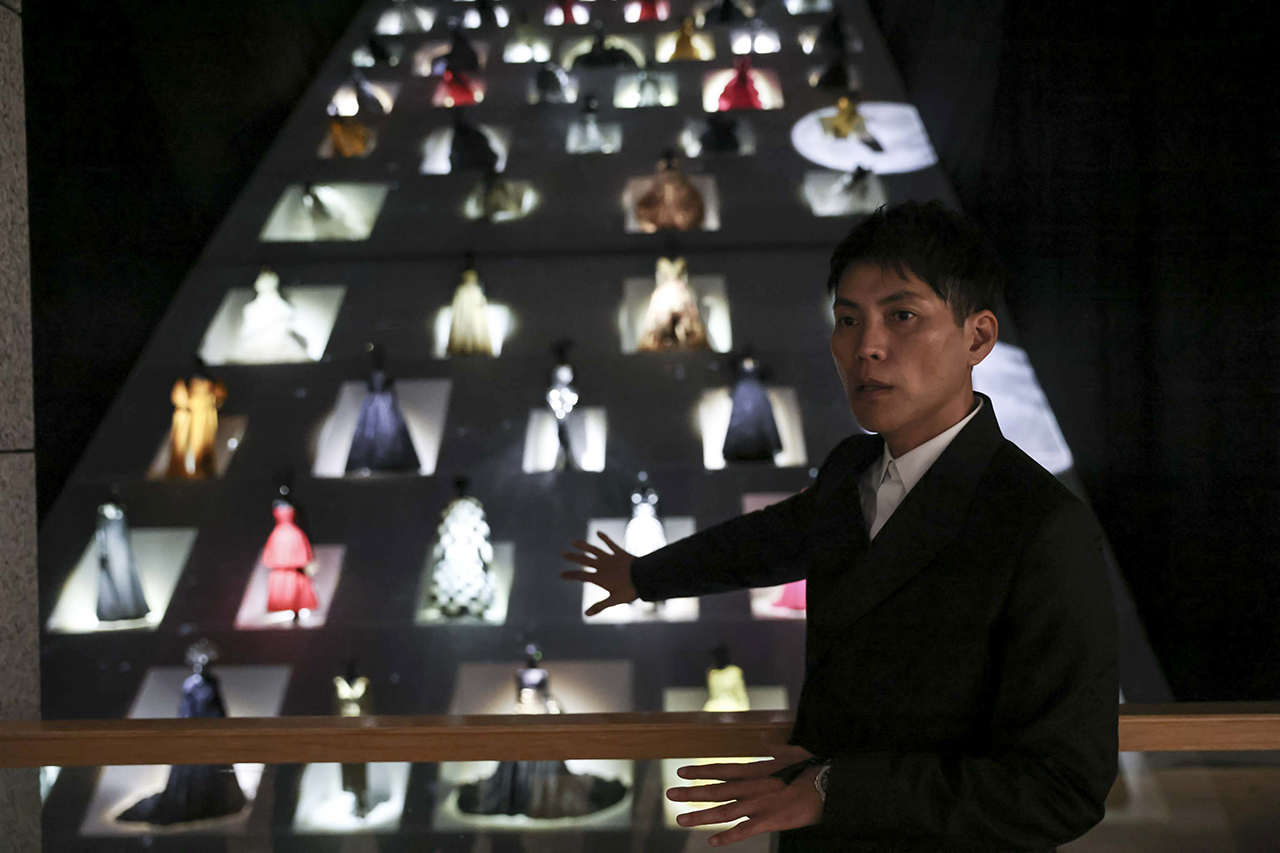 重松は、デンバー、ダラス、東京とディオール展の会場デザインを手がけてきたが、東京では「オーバー・ザ・トップ」、つまり建築家としてのブレーキをかけずに振り切った部分があると語る。