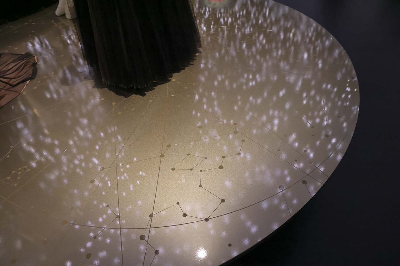 ディオールのクチュールを身に纏ったスターたちには、グレース・ケリー、マリリン・モンロー、エリザベス・テイラーなど綺羅星のような名前が並ぶ。彼女たちが実際に着たドレスが展示されているこの部屋は、星とスターを祝福する空間だ。
