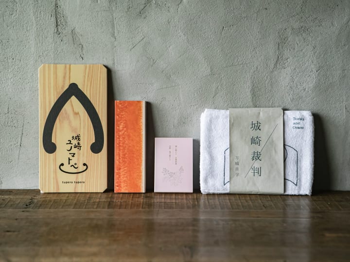 デザイナーや建築家がこの地を訪れるきっかけとなったのは、「城崎温泉の若旦那たちが立ち上げたNPO『本と温泉』という城崎温泉でしか買えない本のレーベルにある」と本書の刊行に尽力した田口幹也は振り返る。計4冊の本はブックディレクターの幅允孝がプロデュースし、江口宏志、万城目学、湊かなえ、tupera tuperaが書き下ろしたうえで、それぞれユニークな装幀が施された。