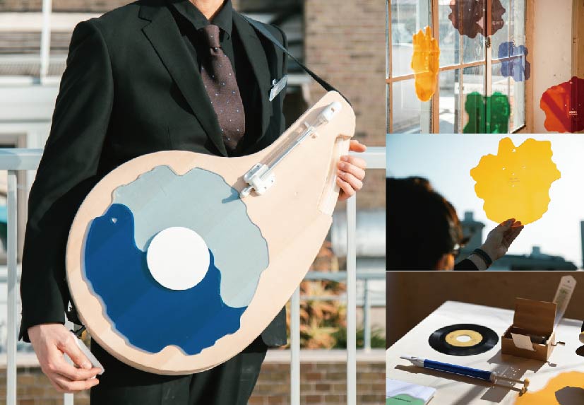 ▲楽譜を色と形で見える化し、体を使って音楽を楽しむ体験を提供する「カム機構による情報記憶メディアを持つ自動演奏型気鳴楽器 『Camgraphone』」。