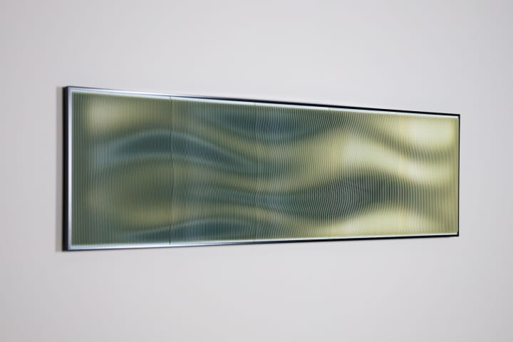 「CO-BREATHING OBJECTS」は、花瓶、ペンダントライト、スタンドライト、イージーチェア、壁面パネルで構成されたシリーズ。すべてのアイテムに見る角度によって色彩が変化する視覚効果を備えた「Phantasmagorical Skin」が使用されている。これにより、人とモノが相互作用するなかで、使う人が心地良いと感じる色彩や居場所を見つけられるようになることを目指した。