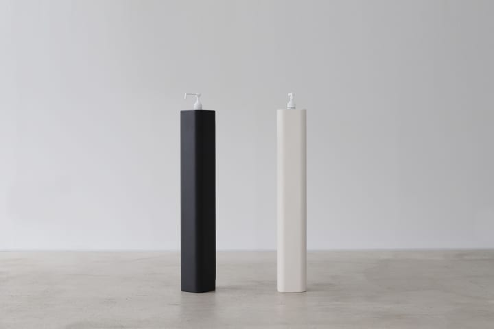 このプロジェクトには、同じ問題意識を持つデザイナーたちが集結。第1回となる2020年の展示会では、江⼝海⾥(プロダクトデザイナー)がデザインした、無駄を取り除いた消毒液スタンド「SUBMARINE」が登場。2021年の第2回展示会では、中込 明(プロダクトデザイナー)による、食事の楽しさを彩る⾶沫防⽌パーテーション「Object Ⅱ」が披露された。