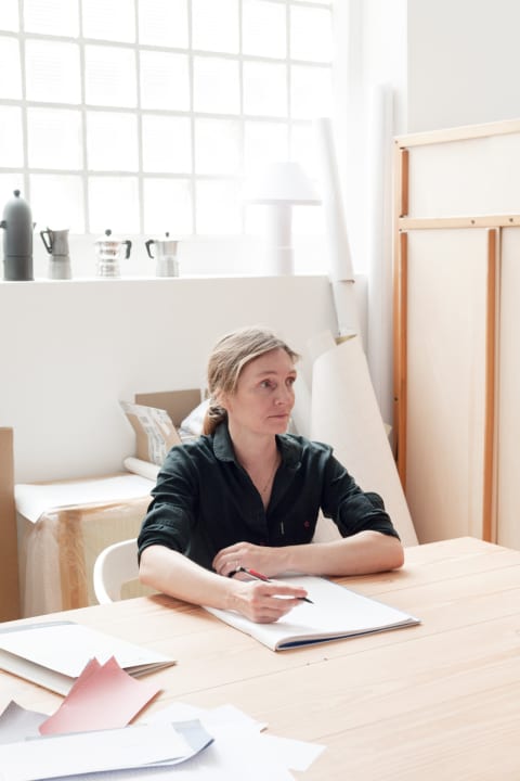 フランスを拠点に活躍するデザイナー インガ・センぺ(Inga Sempé)とのコラボレーションでは、7種類(Fil-à-Fil、Fill、Mash、Plus、Plus Minus、Rhythm、Twirl)のカーテンシリーズ「Sketches(スケッチ)」が誕生。同氏が描くペンシルや筆のストロークを彷彿とさせる、繊細なテキスタイルに仕上がっている。