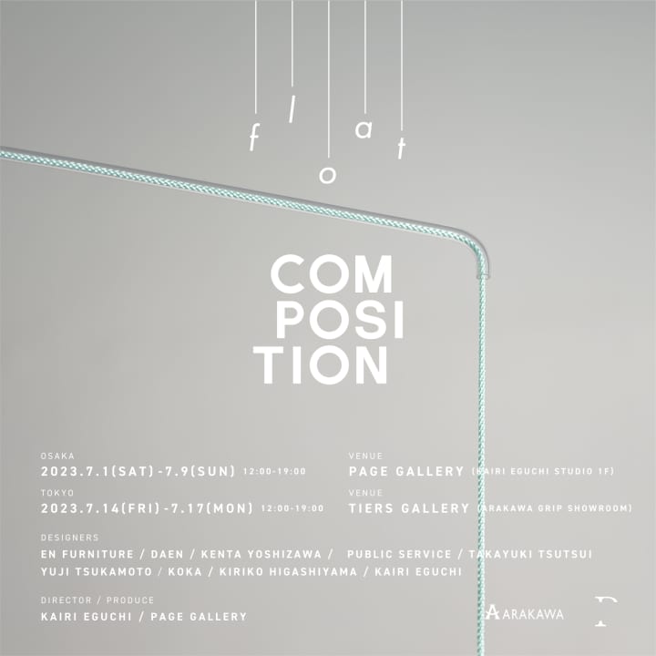 2023年7月に大阪のPage Galleryで開催した第5回COMPOSITIONの展示は、「FLOAT」をテーマに9組のデザイナーがモビールを制作。同月、東京のTIERS GALLERYで巡回展を開催した。