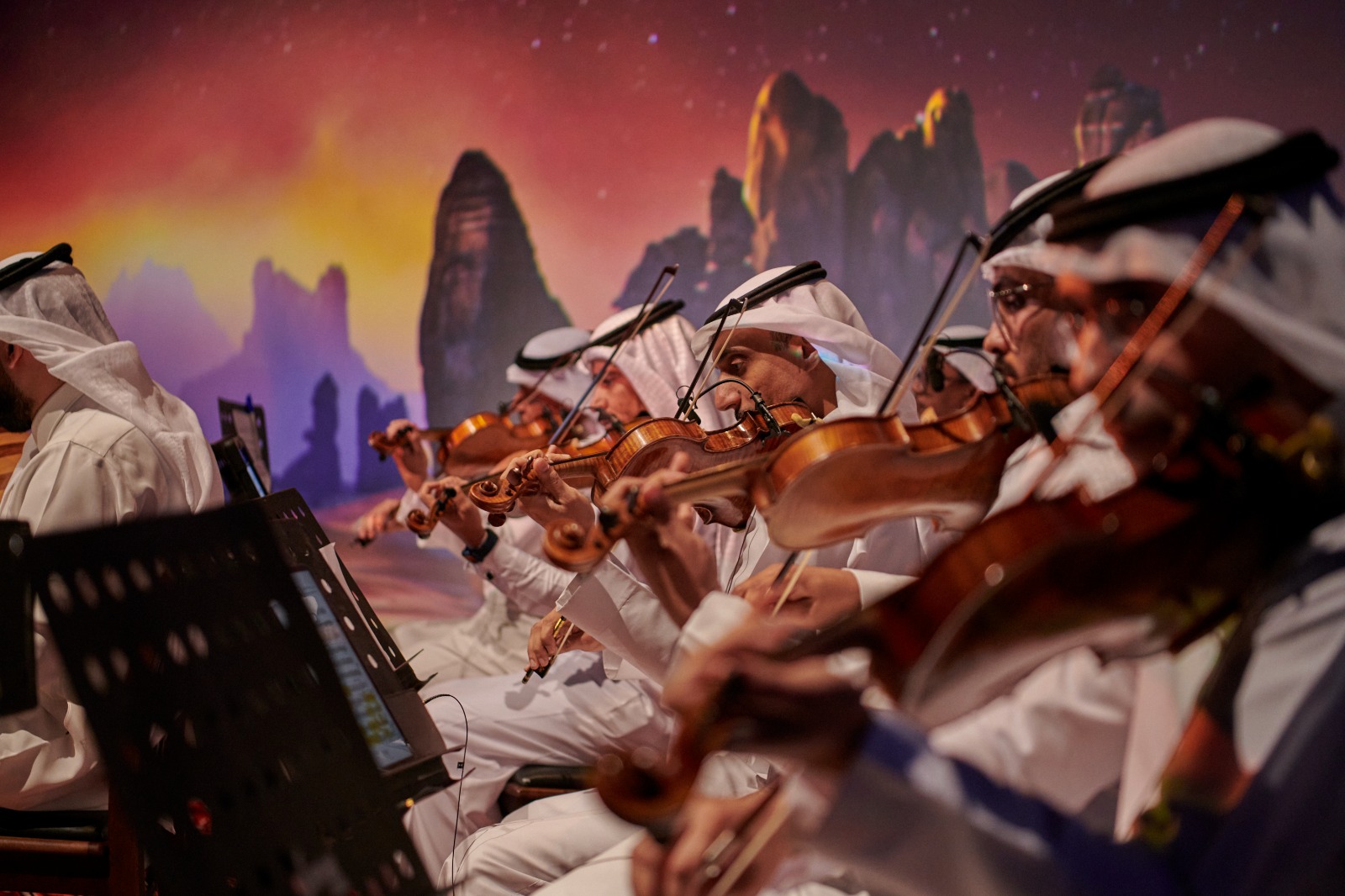 民族音楽とダンスのパフォーマンスであるサムリも披露された。アラビアンナイトを連想させる伝統的な音楽とともに男性たちが音楽のリズムにあわせてステップしながら回ったり、拍手でムードを盛り上げる。食事と音楽、サウジアラビアの夜の景色に包まれ、大阪にいながらサウジアラビアを旅しているような体験をすることができた。