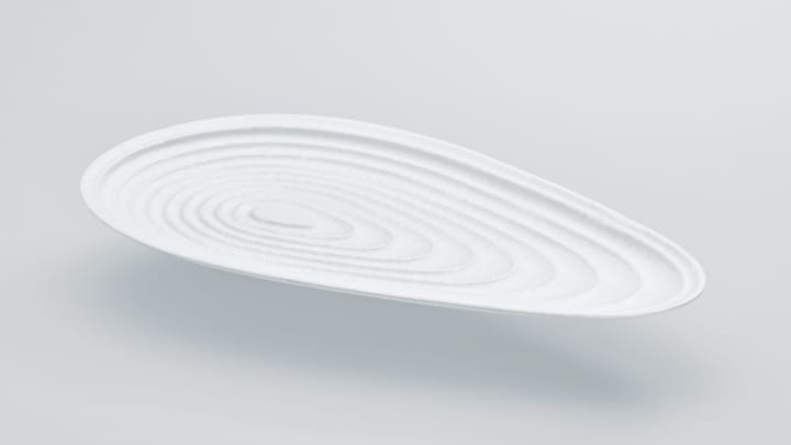 コンセプトモデルは、「植物由来」や「空気」といった、目に見えないPLAiRの特徴がプロダクトデザインの印象をとおして感じられるように、四方に角を持たない有機的で柔らかな形状。縁にまで広がる波紋は、自由自在に形を変えながら暮らしに行き渡るPLAiRの可能性を表現している。