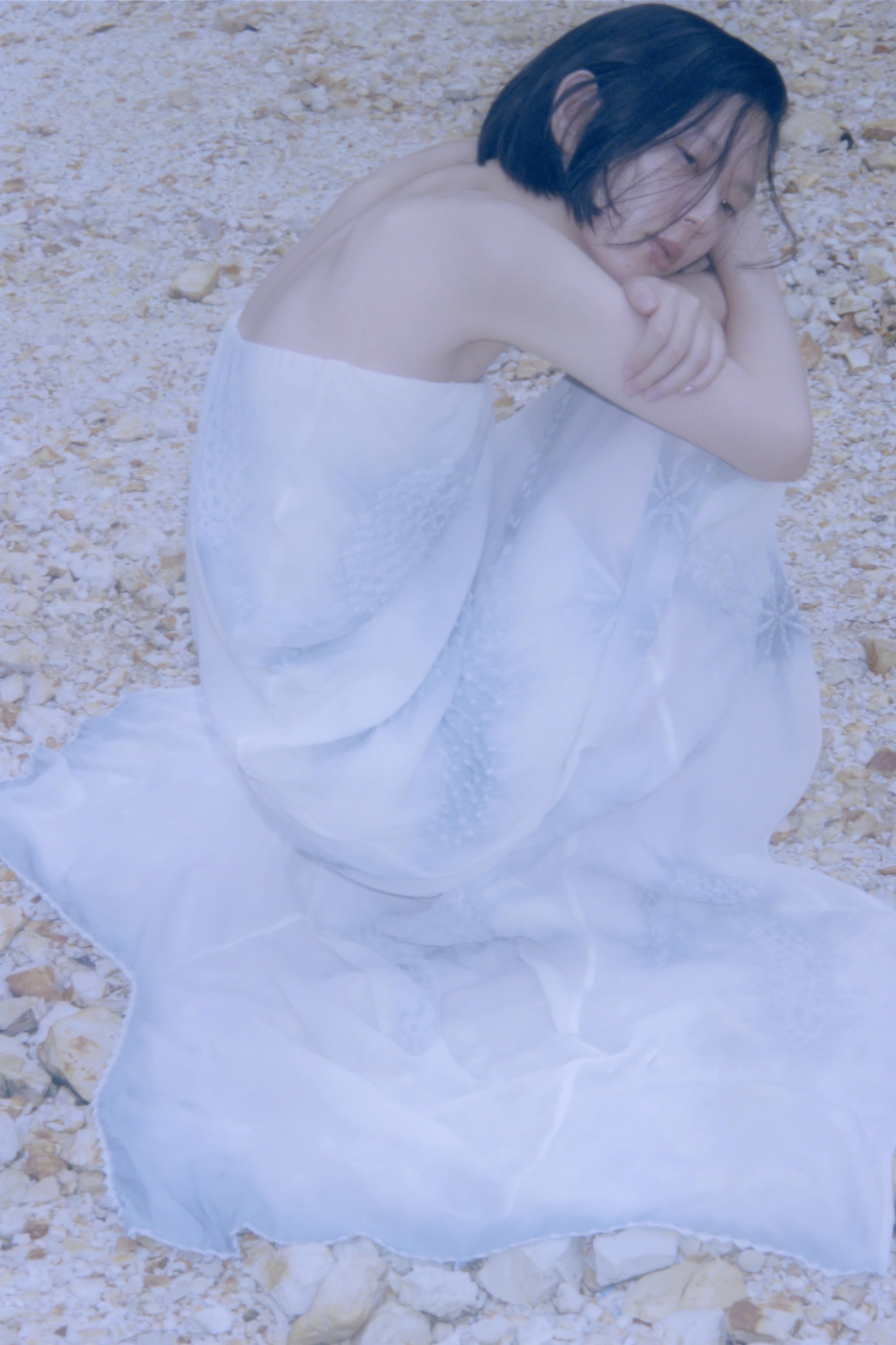 「Fragments」は、17世紀前半に佐賀県有田町で生まれた磁器「初期伊万里」と、その陶片を介した過去と現代の陶工たちのものづくりをめぐる対話から着想を得たコレクションである。透明感のあるラメジャージーのシリーズや手作業による絞り染めを施したアシンメトリーなドレス、初期伊万里に見られる技術のひとつである浮き彫りの技法「陽刻」を再解釈し、オリジナルの草花モチーフをエンボス加工したオーバーサイズのシルクコットンドレスなどで構成されている。