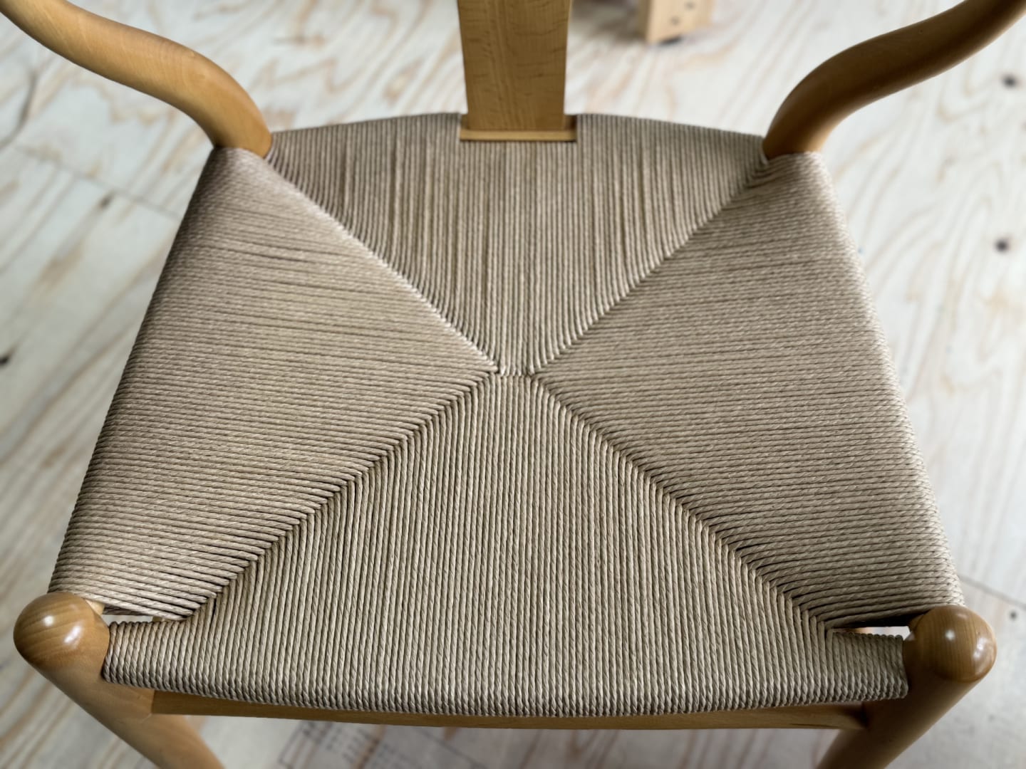 ペーパーコードはカール・ハンセンが使っているものと同じ、デンマークから輸入したものを使っている。リサイクルの紙を使ったペーパーコードは繊維が切れやすいが、本国のものはバージンパルプを使っており、とても丈夫。