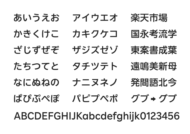 また、濁点の重なり方が異なる文字のバリエーションを導入することで、用途に合わせた使い分けを実現。その他の漢字も使用する場面に合わせてウエイトごとに字面を調整し、カスタマイズするなど、可読性への配慮と使いやすさを考慮している。![]()