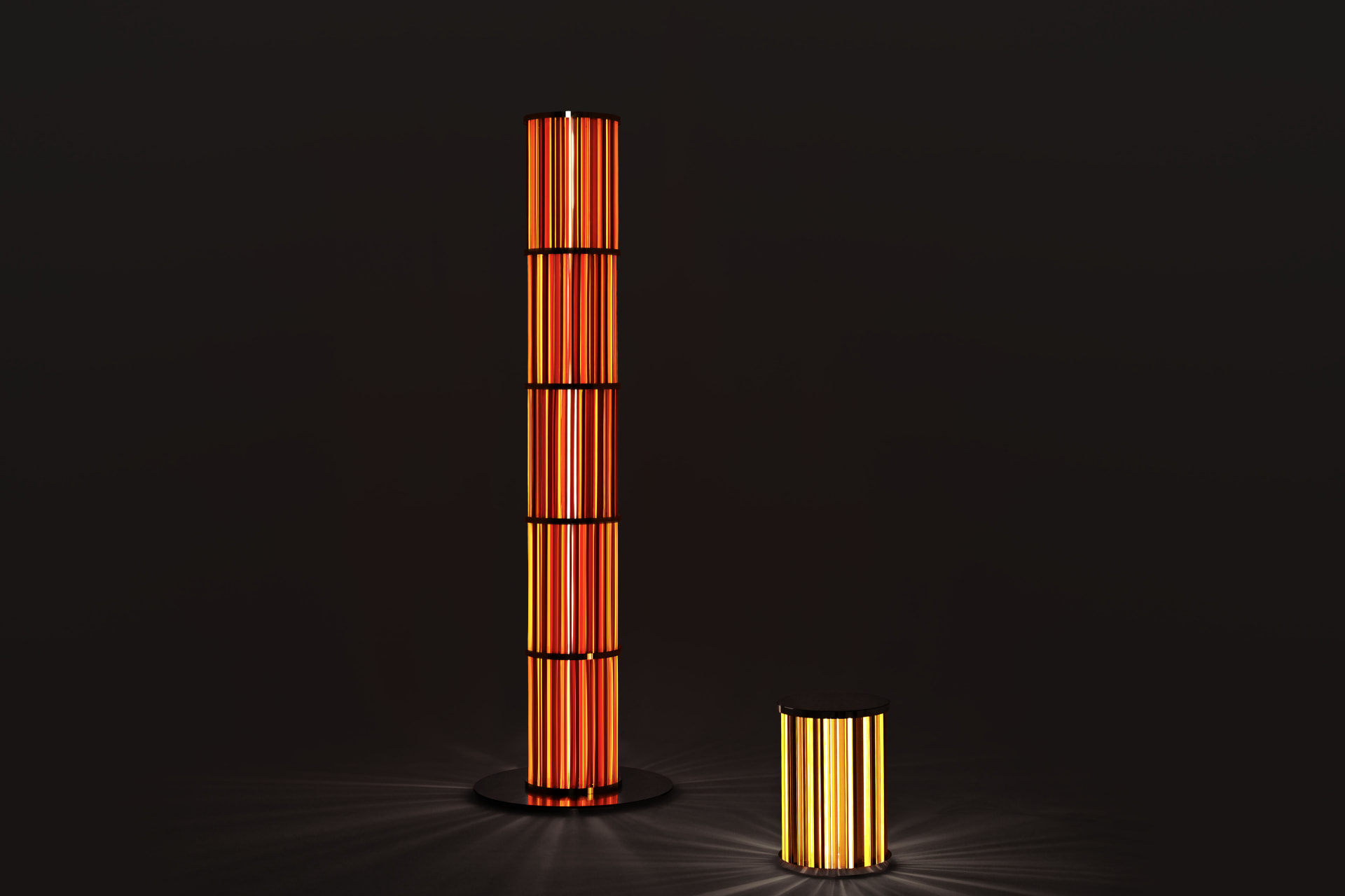 木材で作られた高さ2mのオブジェクトは、穏やかであたたかな光を放つ。