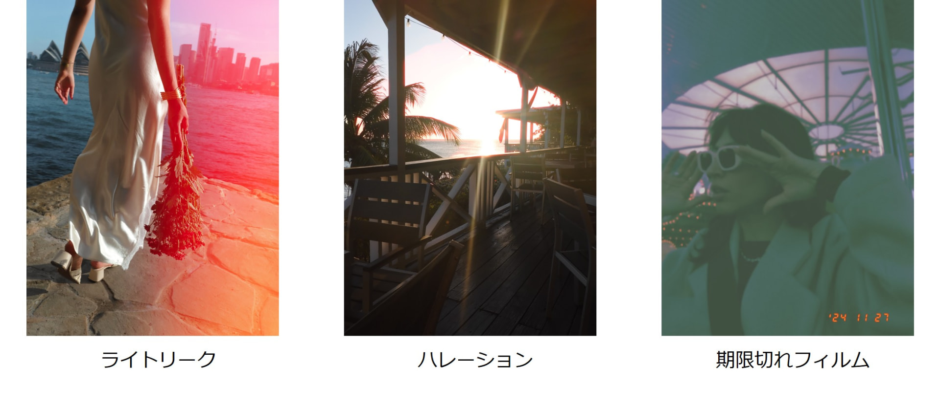 そのほか、フィルム写真の粒状感を加える「グレイン・エフェクト」、フィルムカメラの光漏れを幻想的に再現する「ライトリーク」、さらには「ハレーション」や「期限切れフィルム」といった撮影フィルターも搭載。撮影日を画面右下にスタンプする機能も備え、フィルム撮影体験を追求したデジタルカメラに仕上がっている。![]()