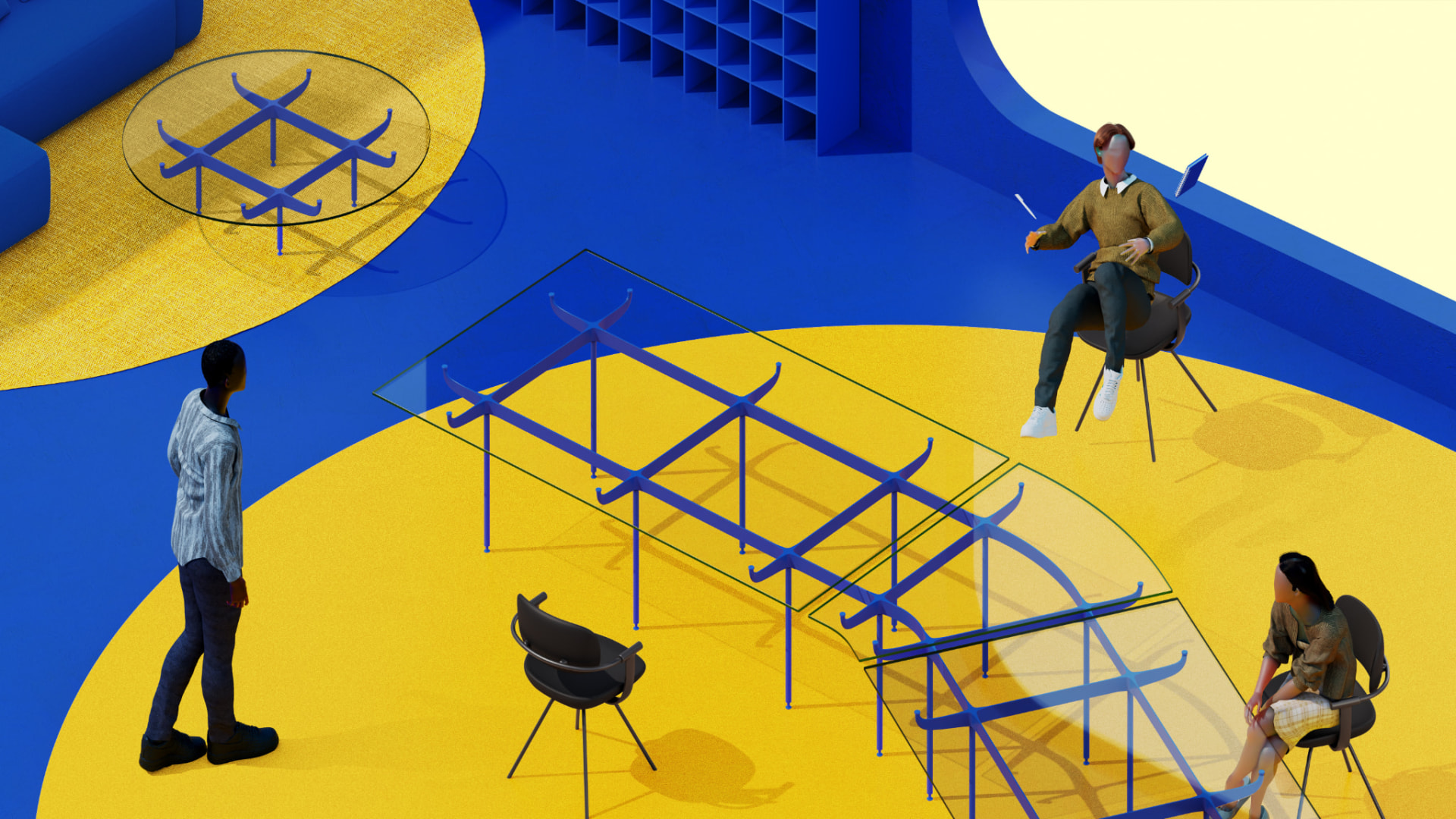 トッド・ブレイチャーによる「BITMAP(ビットマップ)」は、まるで空中に浮いているかのように、大小さまざまなサイズのブロックがひとつのエッジでつながるソファ。ロドルフォ・アグレラが手がけた「CONNEXA(コネクサ)」は、動物の骨格を思わせるフレームがガラスの天板を点で支えている、有機的な構造が特徴のテーブルだ。