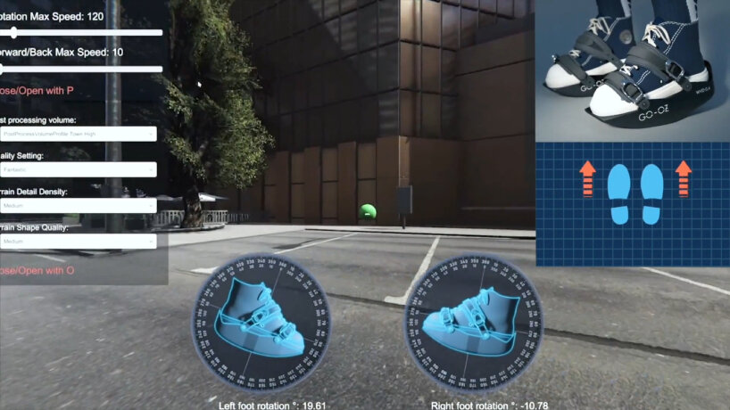 「GO-OZ」は、足に装着することで、自然な歩行をそのまま仮想空間に反映させるウェアラブルコントローラーである。スティックやボタンで移動を操作する従来のVR体験とは異なり、ユーザーの脚や足の動きをリアルタイムに検知し、仮想世界に忠実に再現するため、より自然な没入体験を可能にする。