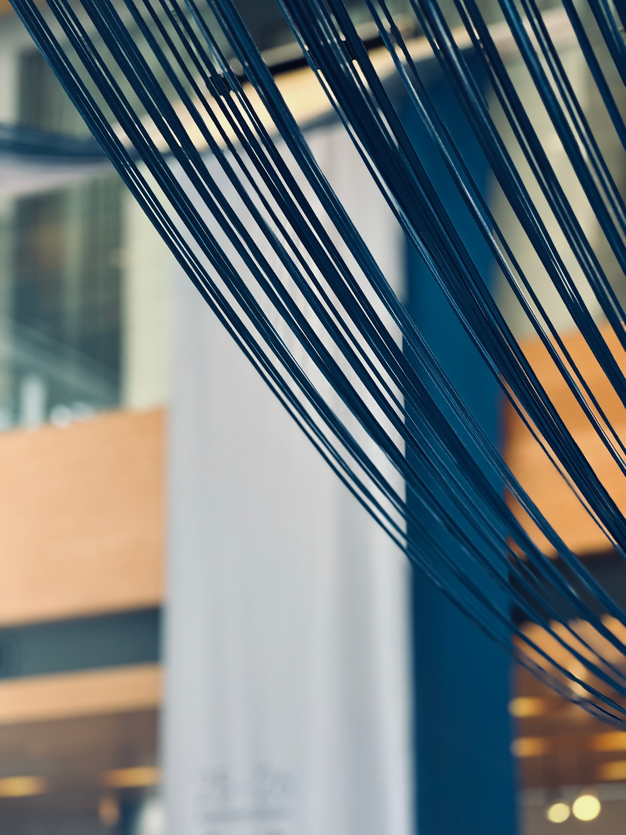 展示会場の空間クリエイティブは、博展が担当。琵琶湖の波を連想させる影の動きを、ウルトラスエードをスリットし連ねたインスタレーションで表現した。Photo by Toray Industries, Inc. Ultrasuede Dept.