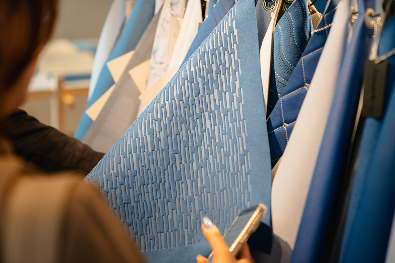 また、今年のテーマ設定について同社は、「素材のルーツやストーリーに焦点を当てました。素材の産地や歴史、商品が生まれる背景をお客様に知っていただくことで、ウルトラスエードへの愛着や共感を育むきっかけにしたい」と説明する。こうした取り組みは、乗車時の満足感やカスタマー自身が「確かな選択をした」という実感を高めるものとして、今回の展示でもそのプロセスが丁寧に紹介された。