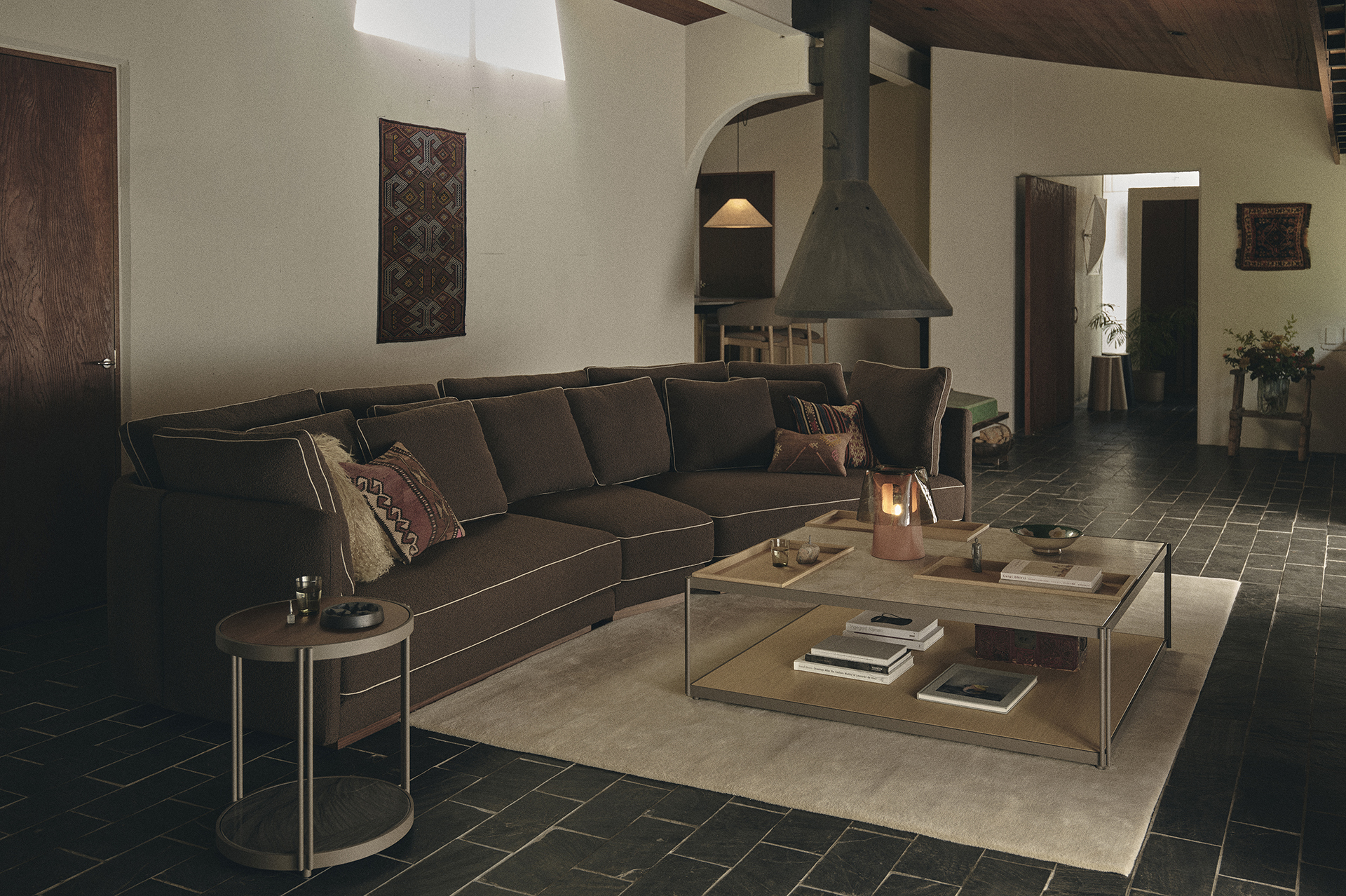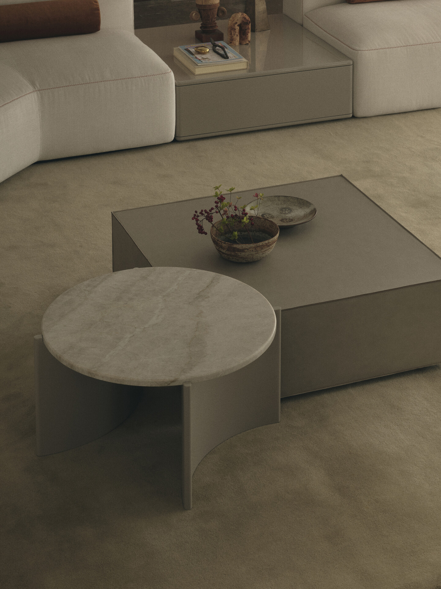 “空気感(ATMOSPHERE)をデザインする”をテーマに、空間・インテリアオブジェクト・アート作品等を発表してきた進藤 篤は、ソファ「Tailor」、サイドテーブル「Tailor」、センターテーブル「Tailor」、テーブル「Hem」を手がけた。