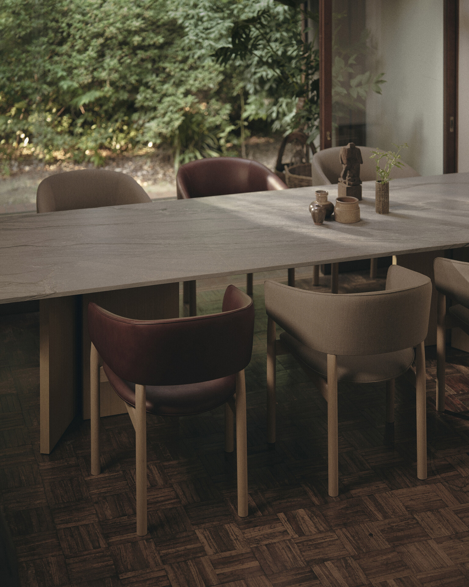 清水慶太によるテーブル「Fontana」、サロンチェア「Marchesa」 撮影:小川真輝 提供:IYB. / イヨベ工芸社