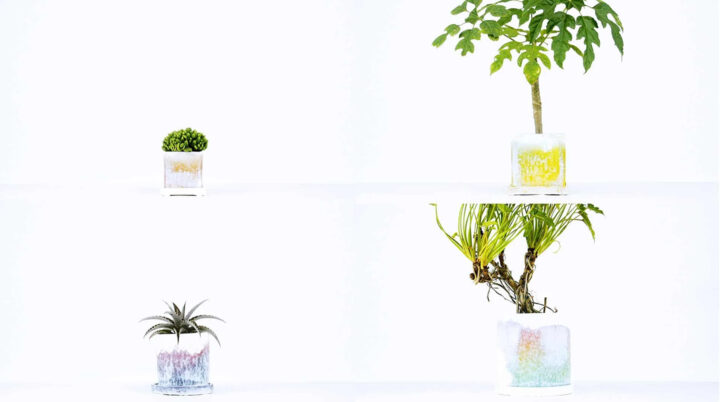 「PLANTS-SKIN」(2016)。LEXUS DESIGN AWARD 2016入賞作品。植物への水やりのタイミングを視覚化したプランター。乾燥している部分と水やりで湿った部分が美しい色彩のグラデーションを描き、刻々と現れては消えていく。Photo by Shunsuke Watanabe