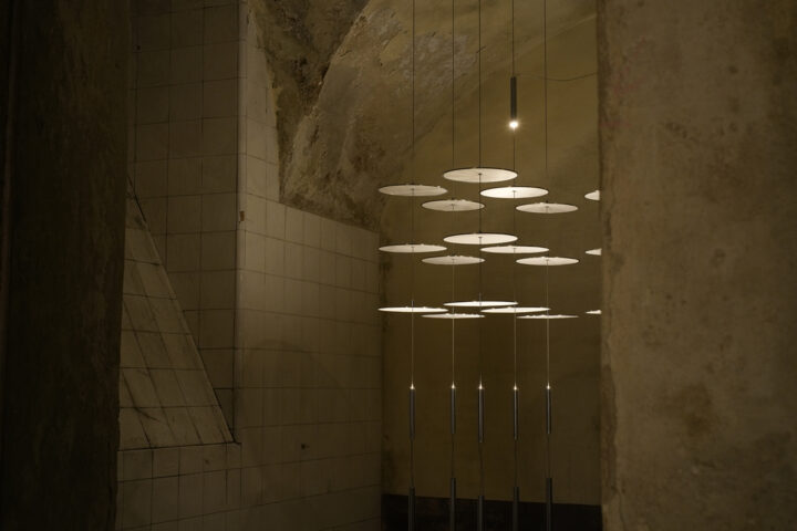 初めて目にした吉添裕人の作品は、2023年に東京・表参道のTIERS GALLERYで展示された「ubique(ウビークエ)」だった。荒川技研工業のワイヤーシステム「ARAKAWA GRIP」とLED照明を組み合わせて構成した空間は、自然光が差し込む欧州の教会のような静謐で心地いい空気に満ちていた。都市開発や大型商業施設、店舗の空間設計に携わる傍ら、照明器具などのプロダクトデザインにも取り組む吉添は、昨年から「空間デザイナー/アーティスト」という肩書きに変え、ジャンルの垣根を感じさせない表現を探求する。活動の原点から現在までを振り返って話を聞いた。