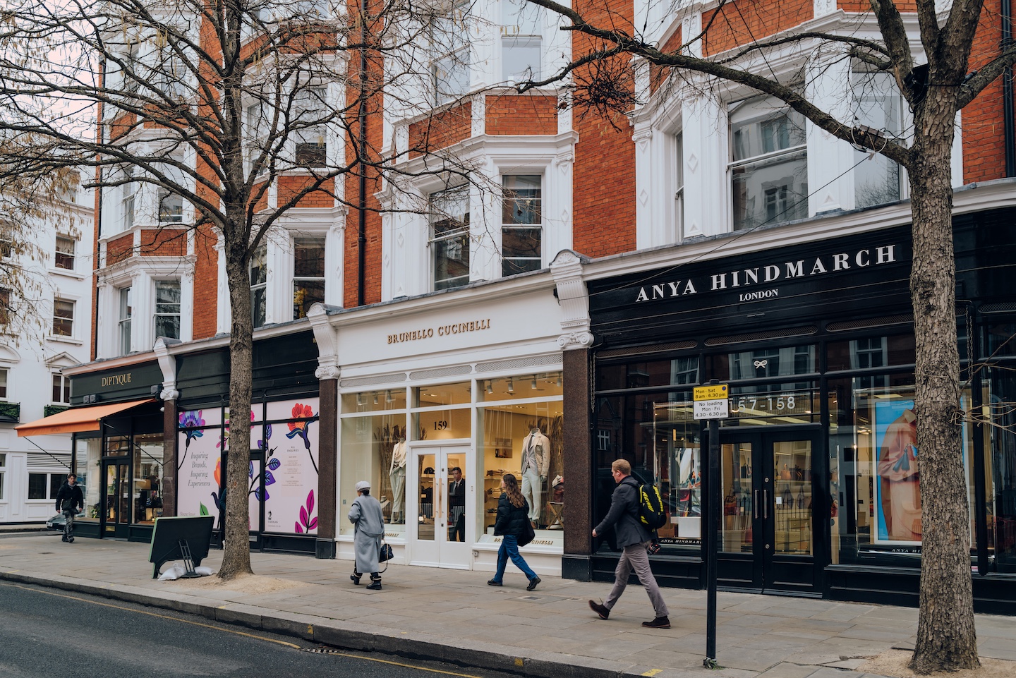 地下鉄のスローン・ストリート駅からナイツブリッジ駅までを南北に結ぶ1kmの長さのスローン・ストリートは、ボンド・ストリートと並ぶエルメス、プラダ、ブルガリ、ディオール、ルイ・ヴィトン、カルティエなどが軒を連なるブランド街だ。