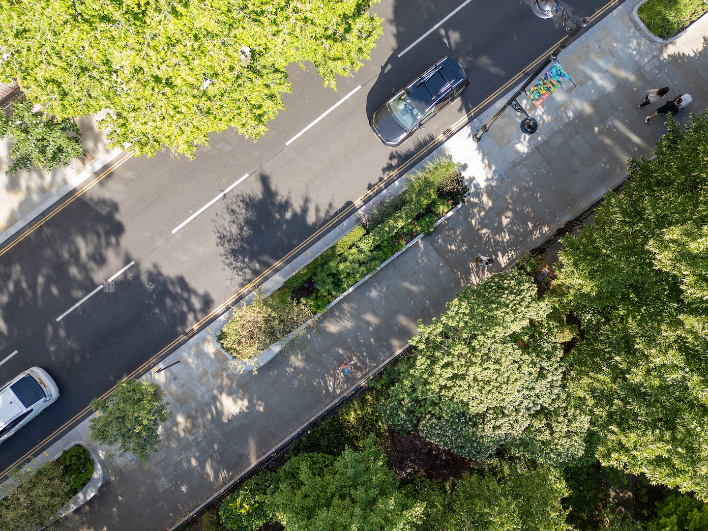 植樹だけでなく、横断歩道の数を増やし、駐車・荷卸し箇所をわかりやすくシルバーグレイの石で再整備したため、路上駐車の数は大幅に減少した。街灯も近隣にあるアーツアンドクラフト様式のマスターピースであるホーリー・トリニティ教会からヒントを得た、複雑なディテールの鋳鉄性の2段重ねのデザインに刷新し、LEDに変えて夜間でも明るい通りにした。