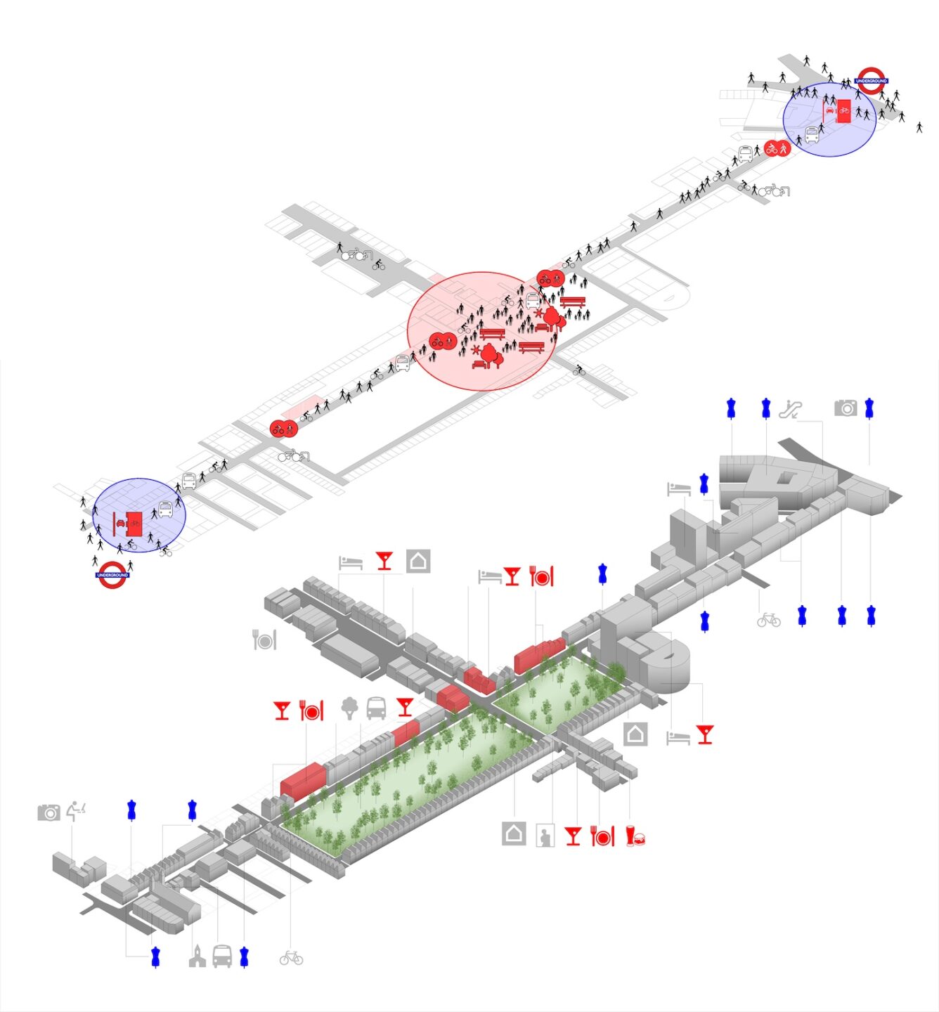 また通りの変革は地上だけでなく地下にも及んでいる。実は4,600万ポンド(約95億円)もの巨額な予算の大部分はその地下に使われている。歴史ある都市ならではのこの通りの地下には、数百もの石炭貯蔵庫と19世紀のバゼルゲット下水道が隠されているのだが、それらを整備し、この地域のデジタル接続性を向上させる大規模な地下インフラが新設された。