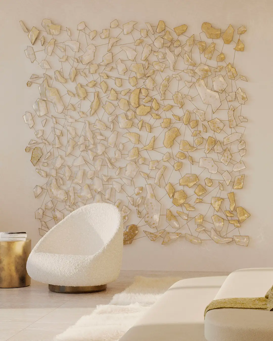 素材とディテールには、メゾン特有のデコンストラクション(脱構築)や「デコルティケ」技法が反映されている。トラバーチンの家具、光学的なホワイトの凹部に樹脂を流し込む処理など、素材への実験的なアプローチが空間の随所に見られる。