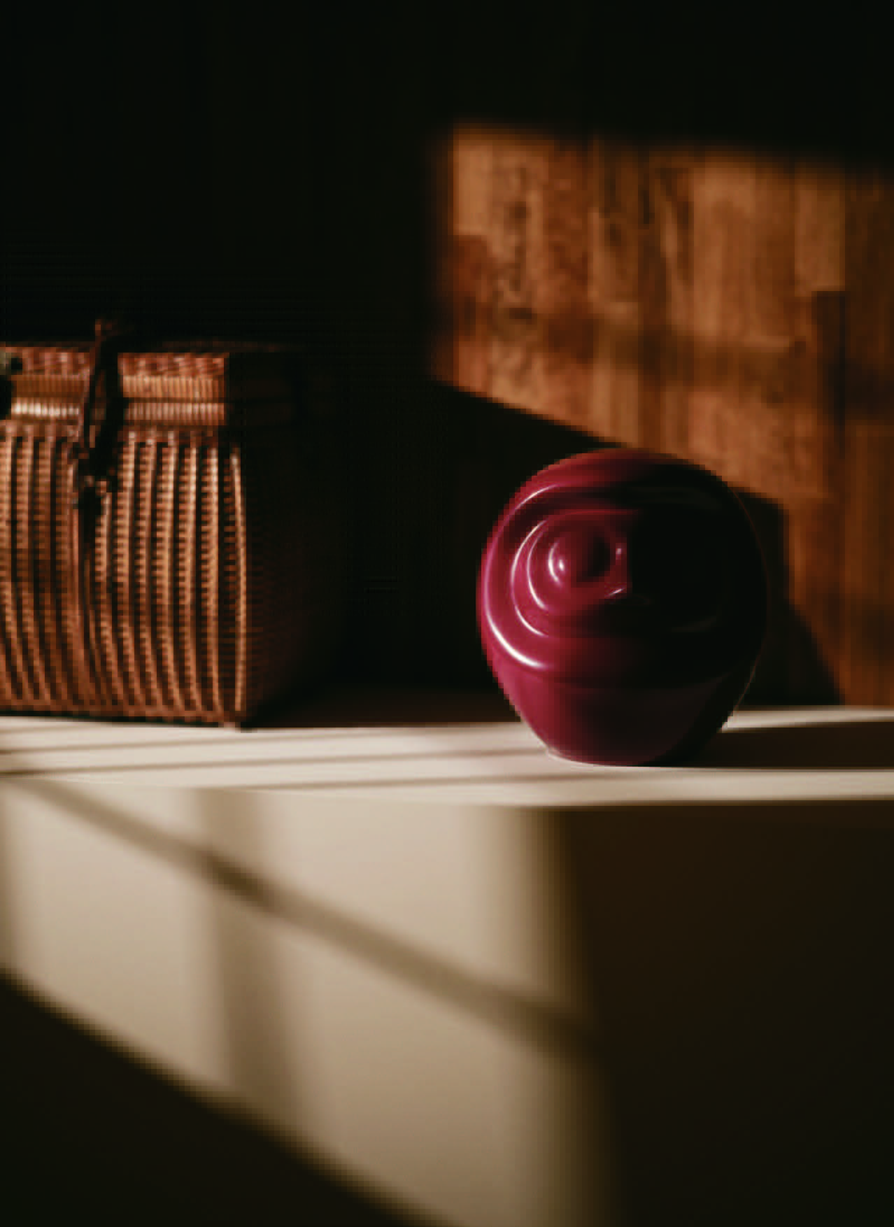 「REPLICA / Tame」透過性のある溜塗により、桧木地の陰影と年輪がほのかに滲む。光の角度で表情が変わり、量感と奥行きが同時に立ち上がる仕上げにより、面の起伏が最も静かに、感じ取れる。