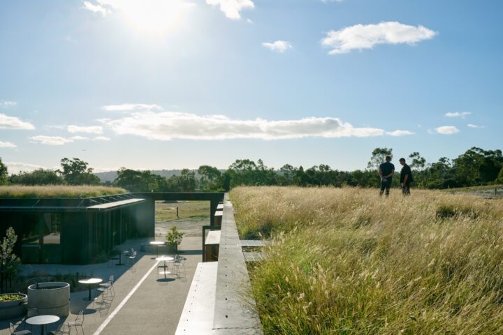 屋上には、厚さ150mmの土壌を全面に敷き、カンガルーグラスやヤムデイジーなどのネイティブプランツが植えられた。この屋上に蝶が育つ環境をつくりたかったとヨーストは語った。Photo by Earl Carter