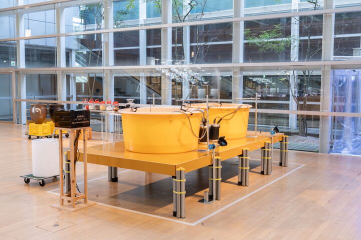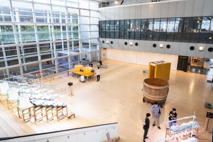 全体を俯瞰してみると、この展覧会は、一見して「アートの展覧会」であるとはわかりにくい。ホワイエ階段上でビジュアライズしている作品以外に象徴的なものは少なく、展覧会らしいキャプションや解説もあまり見られない。総じて工場や研究施設のような印象を受け、展示物は美術館ではない場所で目にするものも多い。なぜこのような展示構成になっているのだろうか。