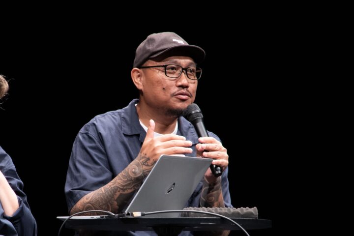 YCAM OPENLAB 2025にて、レオナルド・バルトロメウス。Photo by Kosuke Shiomi