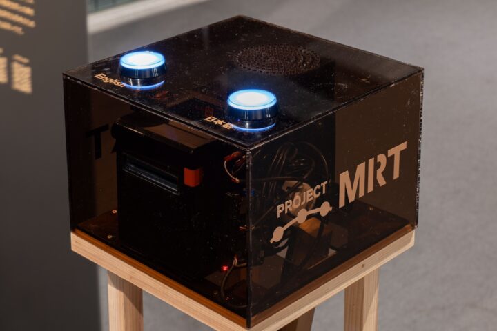 また、それぞれの作品の横にはボタンの付いた機械が置かれている。ボタンを押すとレシートのようなものが発行され、作品の解説を読むことができる。
